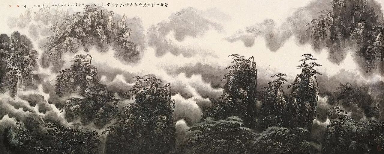 章飚《漫将一砚梨花雨,泼湿黄山几段云》360×145